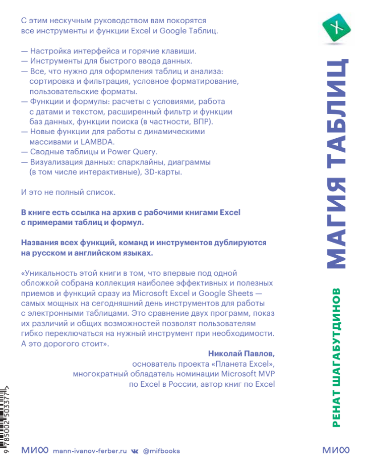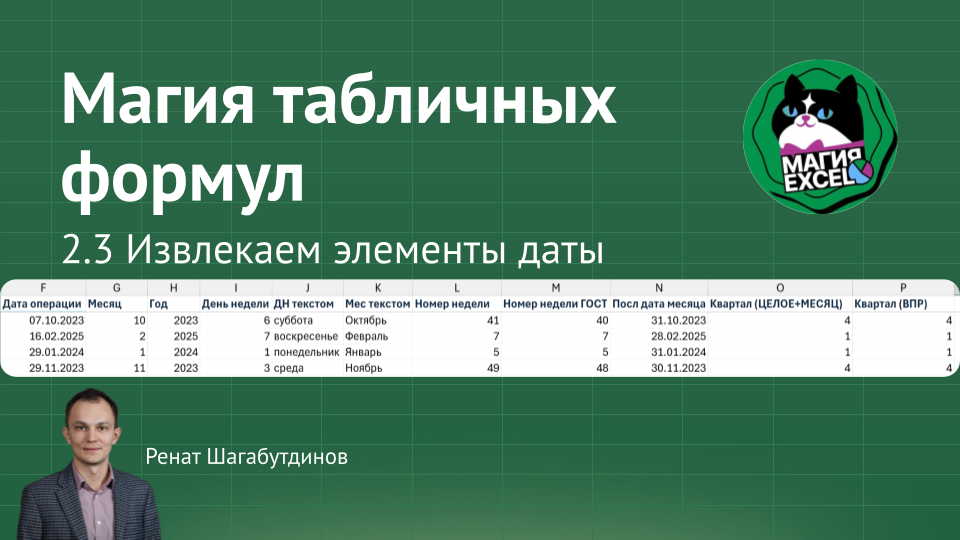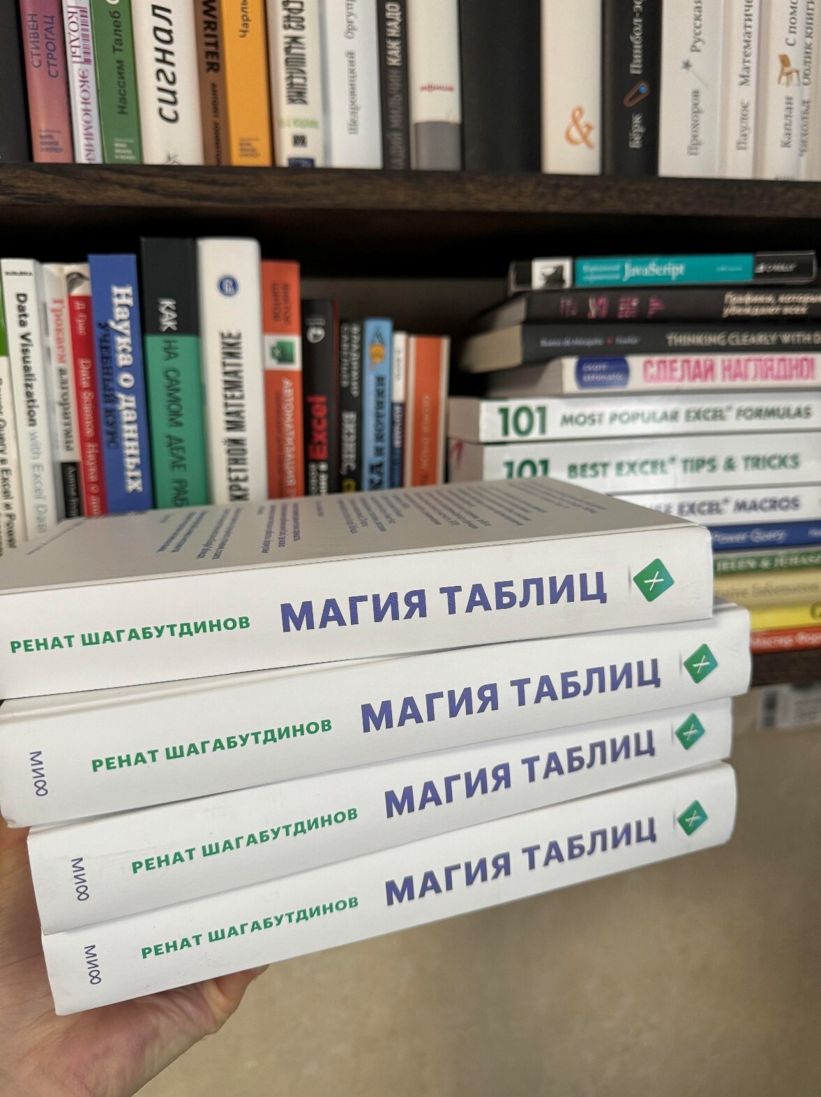 Привет! Вот что ждет вас сегодня. Табличное: мой очный тренинг по табличным формулам в Москве 24−25 мая, новые бесплатные видеоуроки, про хорошую книгу о Power Pivot и 3 правила структурирования данных оттуда, про символы подстановки в Excel. Жизненное: про освоение новых навыков — цитаты из интересной книги. И советы — как читать больше. | | | | Третье издание «Магии таблиц» | | | Завершается работа над третьим изданием моей книги. Очень рад, что на обложке будет отзыв главного (на мой взгляд) экселье России, многократного обладателя звания MVP Николая Павлова (я сам учился когда-то в первые годы работы по его статьям, а впоследствии ходил и на обучение и читал замечательные книги): | | | | А второй тираж закончился! Может, в отдельных магазинах и остается кое-что, но из издательства я забрал последние экземпляры, чтобы подарить участникам очного тренинга в мае (о котором далее) | | | | Оффлайн-тренинг в Москве по Excel | | | Оффлайн-тренингу в Москве быть! Тема: « Табличные формулы для продолжающих» 24−25 мая в Москве Я буду учитывать уровень и пожелания всех, потому что компьютерный класс небольшой — 15 человек максимум. 3 места из 15 уже заняты по состоянию на второй день после анонса, когда я пишу эту рассылку. Вот в таком классе будем учиться: | | | Так что будем работать интенсивно, все сразу отрабатывать вместе и обсуждать. Живое обучение — это самый приятный и интенсивный формат! Обожаю и учиться, и проводить обучение так. Кратко программа вот:— Краткий ликбез по формулам: функции, ссылки, ошибки, формулы массива — Логические формулы и функции. Проверка данных и условное форматирование с формулами — Функции для работы с датами — Функции для работы с текстом — Расчеты с условиями (от СУММЕСЛИМН до элементов управления — флажки, кнопки — в сочетании с формулами) — Поиск данных и объединение таблиц — Новые функции Office 365 и Google Таблиц А подробнее по ссылке ( https://shagabutdinov.ru/formulas-offline). Какой уровень нужен? Предполагается, что пальцы ваши неоднократно касались клавиши F4 и вы писали хотя бы минимально простые формулы ( СУММировали что-то или даже от ВПРили таблицу-другую). Если есть сомнения — пишите мне, обсудим. — До 10 апреля действует скидка 3 000₽— Первые 10 участников получат книгу в подарок! — В обучение включены кофе-брейки. Будут ноутбуки с 2021 офисом, но в идеале взять свой с Microsoft 365 и/или Google Таблицами, чтобы попрактиковаться с новыми функциями. Исходные, готовые файлы и сотня-другая слайдов с материалами по всем темам. — Если вы решите отказаться от обучения, потому что вам не понравится, это можно сделать в первом перерыве первого дня с возвратом полной стоимости. — Если вы хотите участвовать, напишите на renat@shagabutdinov.ru. Я пришлю ссылку на оплату онлайн. А также задам вам несколько вопросов про ваш уровень, планы и рабочие задачи, чтобы учесть это и сделать обучение максимально полезным для всех. — Если ваше обучение оплачивает организация — оформим договор, счет и акт. Пишите на почту renat@shagabutdinov.ru или оставляйте заявку на сайте, чтобы забронировать место! | | | В этом видео про то, как извлечь из даты месяц, год, квартал, номер недели и день недели, последний день месяца. Заодно по ходу дела — несколько полезных горячих клавиш и ВПР с таблицей внутри формулы. А также для подписчиков уже доступно новое видео про функции для вычислений с рабочими днями и производственный 