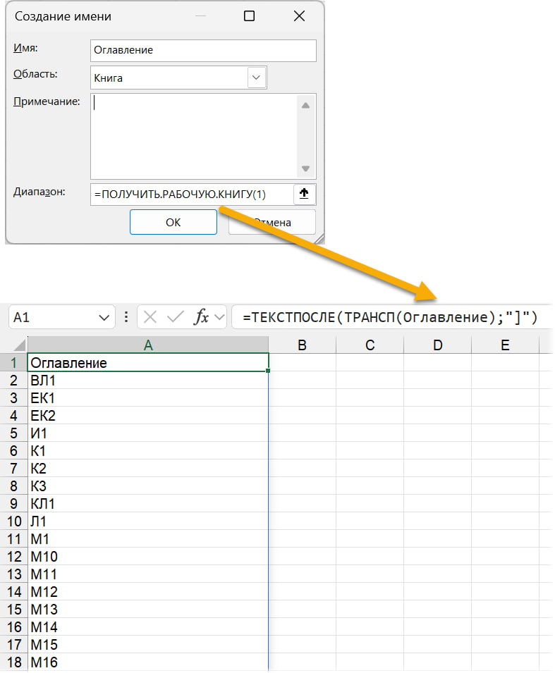 (но в новых формулах столько функций, что можно и как-нибудь иначе вообще это решить ;)) | | | | Для этой цели достанем из закромов Excel древнейшую и недоступную на рабочем листе макрофункцию ПОЛУЧИТЬ.РАБОЧУЮ.КНИГУ (GET.WORKBOOK) | | | Если дать ей аргумент 1 — она возвращает массив с названиями всех листов. Второй аргумент — имя книги, но его можно пропустить, и тогда формула будет возвращать данные по активной книге. Так как она не работает в ячейках, придется создать имя — Ctrl+F3 — придумайте имя (у нас будет «Оглавление») — и введите: =ПОЛУЧИТЬ.РАБОЧУЮ.КНИГУ (1)Теперь остается перевернуть (транспонировать) список с помощью ТРАНСП / TRANSPOSE: =ТРАНСП (Оглавление)и избавиться от имени книги, идущей в квадратных скобках: =ТЕКСТПОСЛЕ (ТРАНСП (Оглавление);"]")Оглавление макросом можно найти тут: https://t.me/lemur_excel/29 | | | | Конференция в Ижевске «Симфония бизнеса» | | | | Съездил в Ижевск на деловой форум. Выступил (непривычно на открытом воздухе на сцене, да еще при ярком солнце — интересный опыт!), а потом послушал Артемия Лебедева, погулял по городу, сходил в книжный и музей Калашникова. Все компактно, все можно успеть за один день. | | | | Вечером центральная площадь города (а там проходило мероприятие) открывалась для всех и Государственный оркестр Удмуртии играл классику!