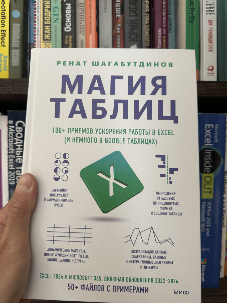 Книжно-жизненное: бизнес-форум в Ижевске и мои заметки по мотивам выступления Артемия Лебедева, несколько новых книг, простой лайфхак для борьбы с перфекционизмом и вашим списком задач | | | | Новое издание «Магии таблиц» | | | До меня доехали экземпляры третьего издания «Магии таблиц»! С выхода первого тиража книга набрала около 500 отзывов на Озоне и ВБ со средней оценкой примерно 4.9 / 5. Первый тираж — 2 500, второй — 3 000 (оба распроданы), третий — 3 000. Третье издание: — снова твердый переплет — обновления и исправления, актуальная информация на 2025 год — добавилось подробное руководство по сверхновым функциям GROUPBY и PIVOTBY — насколько я знаю, про них в книгах еще вообще больше никто не писал про них даже на английском, во всяком случае я покупаю почти все более-менее значимое про Excel на русском и английском и пока не видел; так или иначе информация — свежак дальше некуда (спасибо редакторам издательства, которые терпят бесконечные правки и дополнения — такая уж тема) — а самое главное — отзыв верховного экселье России Николая Павлова ( https://t.me/planetaexcel). Я учился по его книгам, статьям и тренингам. Спасибо Николаю! | | | Вот-вот будет во всех магазинах, а в магазине издательства уже! Третье издание опознаете по собственно отзыву Николая, по отсутствию синего кругляша на обложке и по версии Excel 2024 на этой же самой обложке. | | | | Тренинг «Табличные формулы для продолжающих» | | | | Прошел тренинг по табличным формулам в Москве. Большое спасибо всем участникам! Было непросто и очень интенсивно (для слушателей), но, надеюсь, полезно ;) Вот несколько примеров формул, которые мы создавали: