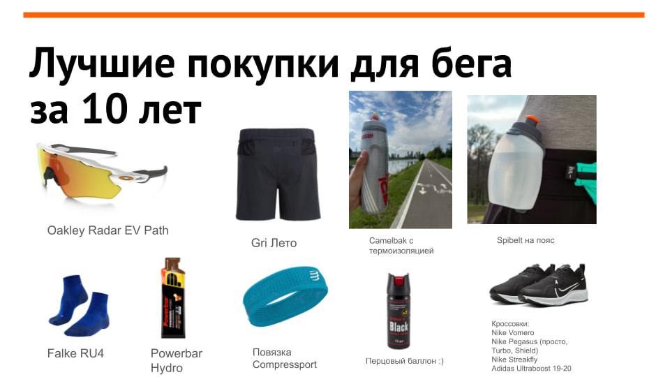 - В начале своего спортивного пути можно обойтись без всего. Я бегал первые пару лет в хлопковых футболках. Первый марафон (3:50; а спустя три месяца и второй — уже 3:16) я бежал в плавательных шортах, беговых не было 😊 Но если есть возможность и желание, надо себя баловать и покупать себе хорошие вещи для спорта, это все же хобби и оно должно приносить радость, в том числе через вещи, но надо просто помнить, что в основе тут сам бег и удовольствие от него, а результаты никакие покупки нам не принесут, нужно работать.